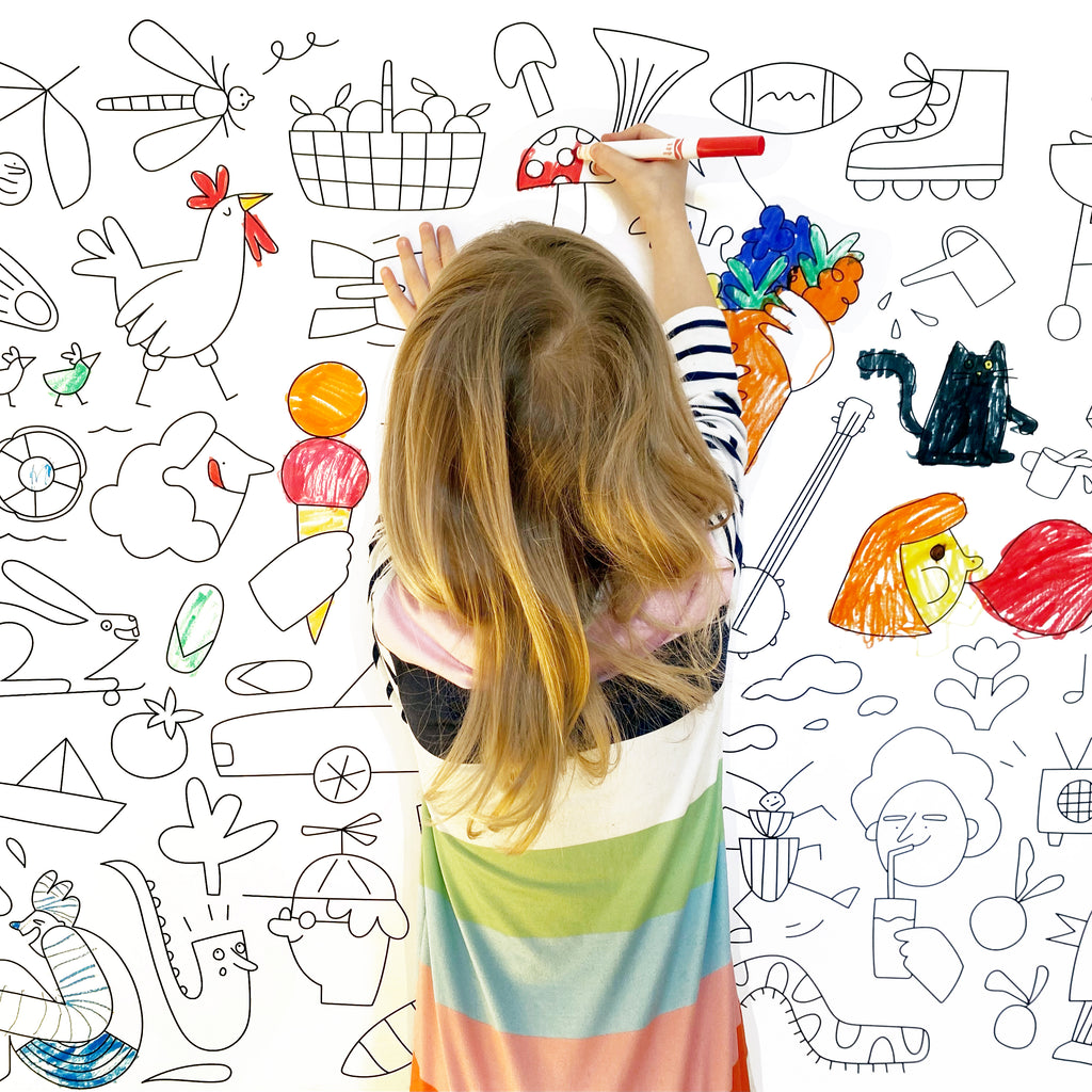 Dive into hours of fun with this original giant poster and discover a fantastic world where children's imagination takes flight. Witness the dance steps of an insect, meet a rooster on two legs, and join a canine duo in a convertible to create an imaginative realm full of surprises. A creative and captivating activity that will spark your little explorer's inventive spirit. Perfect for decorating their room and bringing to life a unique and enchanting universe. This joyful poster transforms the ordinary into the extraordinary, offering a delightful blend of humor and imagination.