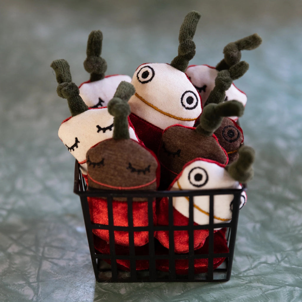 Cotton Chery, viscose and polyester, padded with polyester fibers. Embroidered face.