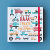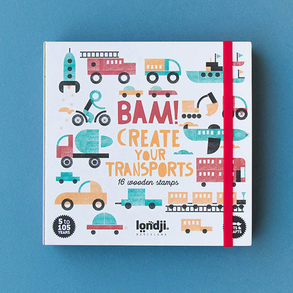 By combining our stamps you will create cars, motorcycles, rockets, planes and much more! The game includes 16 wooden stamps and 4 colored ink pads. There is also a notebook included for your creations!