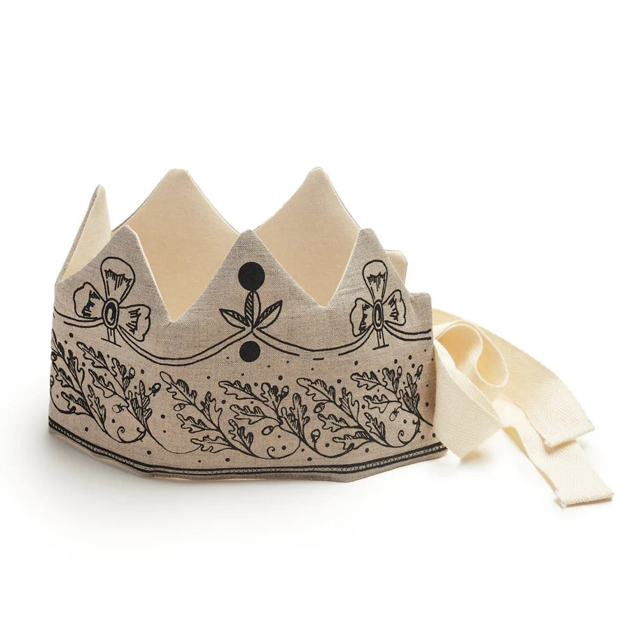 Never be caught unprepared on January 6, and live the life of a castle the other 364 days of the year! Classic, timeless linen crown. Suitable for all heads. Attaches with cotton cords.