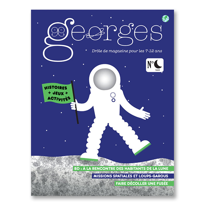 "Dans ce numéro, Georges te propose de l’accompagner sur la Lune ! Avec une BD pour rencontrer des luniens, l’histoire vraie d’Apollo 13, une fusée à construire…