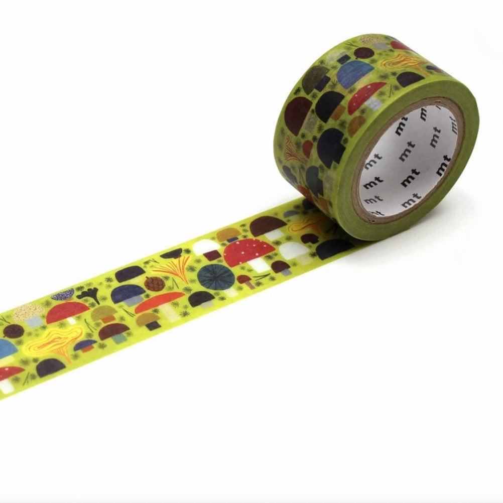 The 'Mushroom' roll of washi tape was designed by Matti Pikkujämsä; an artist and illustrator from Helsinki, Finland. This yellow-green washi tape presents a stream of colourful mushrooms in all different shapes and sizes. Perfect for decorating journals and diaries, children's furniture, brightening up a boring picture frame and personalising presents.