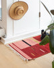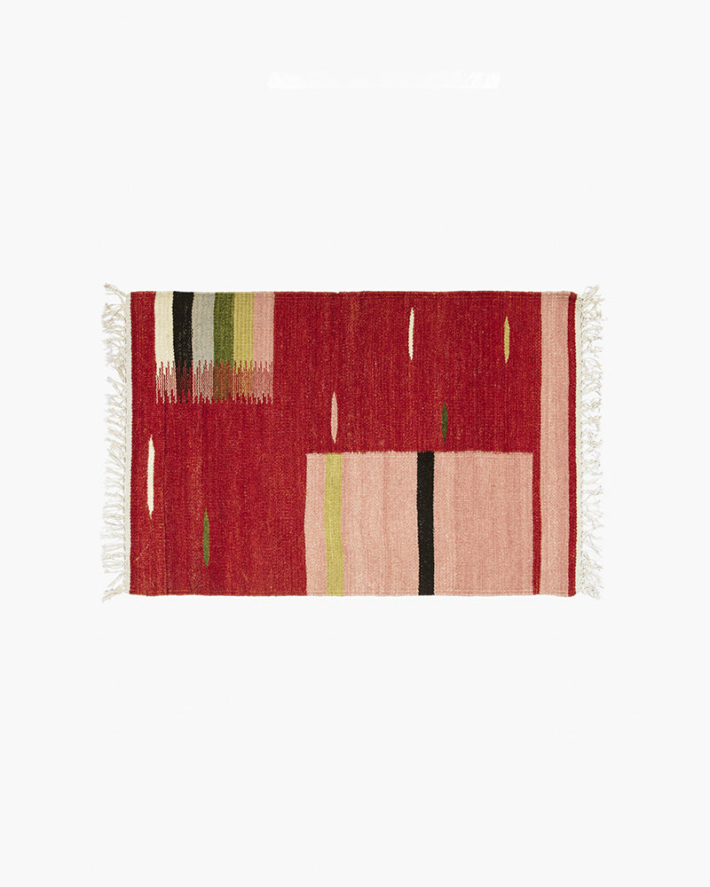 ROSE GARDEN is a Kilim rug. Kilim is the name for a thin, flat, tapestry-woven, graphic style rug. It is made by weaving the horizontal yarn (weft) through vertical yarn (warp). The rug is woven so tightly that the warp is barely visible. This makes for a very durable rug, that can handle weight and movement.