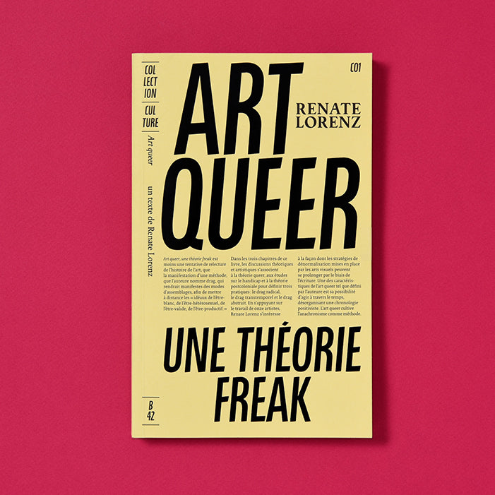 Art queer s’intéresse à la façon dont les stratégies de dénormalisation mises en place par les arts visuels peuvent se prolonger par le biais de l’écriture. Dans les trois chapitres de ce livre, les discussions théoriques et artistiques s’associent à la théorie queer, aux études sur la handicap et à la théorie postcoloniale pour définir trois pratiques : le drag radical, le drag transtemporel et le drag abstrait. Une des caractéristiques de l’art queer, tel que le définit Renate Lorenz, est sa possibilité d’agir à travers le temps, désorganisant une chronologie positiviste et se saisissant d’objets historiques par affinité. L’art queer cultive l’anachronisme comme méthode. En s’appuyant sur le travail de onze artistes, le livre est moins une tentative de relecture de l’histoire de l’art, que la manifestation d’une méthode, que l’auteure nomme drag, qui rendrait apparents des modes d’assemblages, « des connections productives entre le naturel et l’artificiel, l’animé et l’inanimé, tout ce qui permet de produire des connections aux autres et aux choses plutôt que de les représenter ». Parmi les artistes étudié∙e∙s figurent notamment Zoe Leonard, Shinique Smith, Jack Smith, Wu Tsang, Ron Vawter, Bob Flanagan, Henrik Olesen, Felix Gonzalez-Torres, Sharon Hayes et Pauline Boudry/Renate Lorenz.