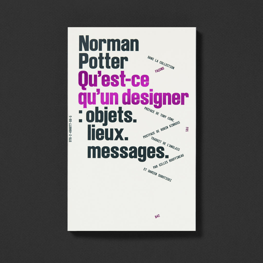 Bien que ce texte ait été écrit en 1969, la singularité du point de vue de l’auteur ainsi que son positionnement politique sont toujours aussi pertinents et en font un ouvrage de référence pour de nombreux professionnels. Cette réédition comprend la préface rédigée par Tony Côme à l’occasion de la précédente réédition (2018), qui revient sur le parcours de Norman Potter, tout à la fois menuisier, enseignant, designer, poète et militant anarchiste.