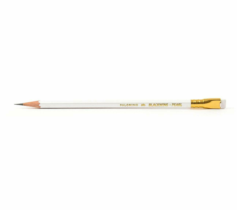 Le Blackwing Pearl présente une finition blanc nacré, une empreinte dorée, une gomme blanche et un noyau en graphite équilibré et lisse qui est plus doux que le graphite trouvé dans le Blackwing 602, mais plus ferme que le graphite trouvé dans le Blackwing MATTE. Chaque crayon Blackwing Pearl est doté de l'emblématique virole carrée Blackwing.