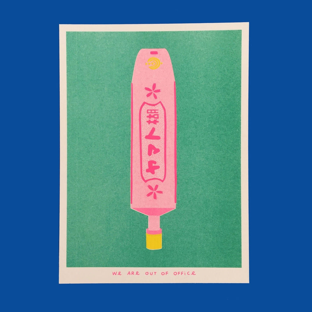["13x18 cm","5x7","adult","Affiche","Japan","Netherland","Newsletter","poster","retail-only","riso","risographie","risography","tomato","Wall art","We are out of office","Winneke de Groot and Felix van Dam"]
