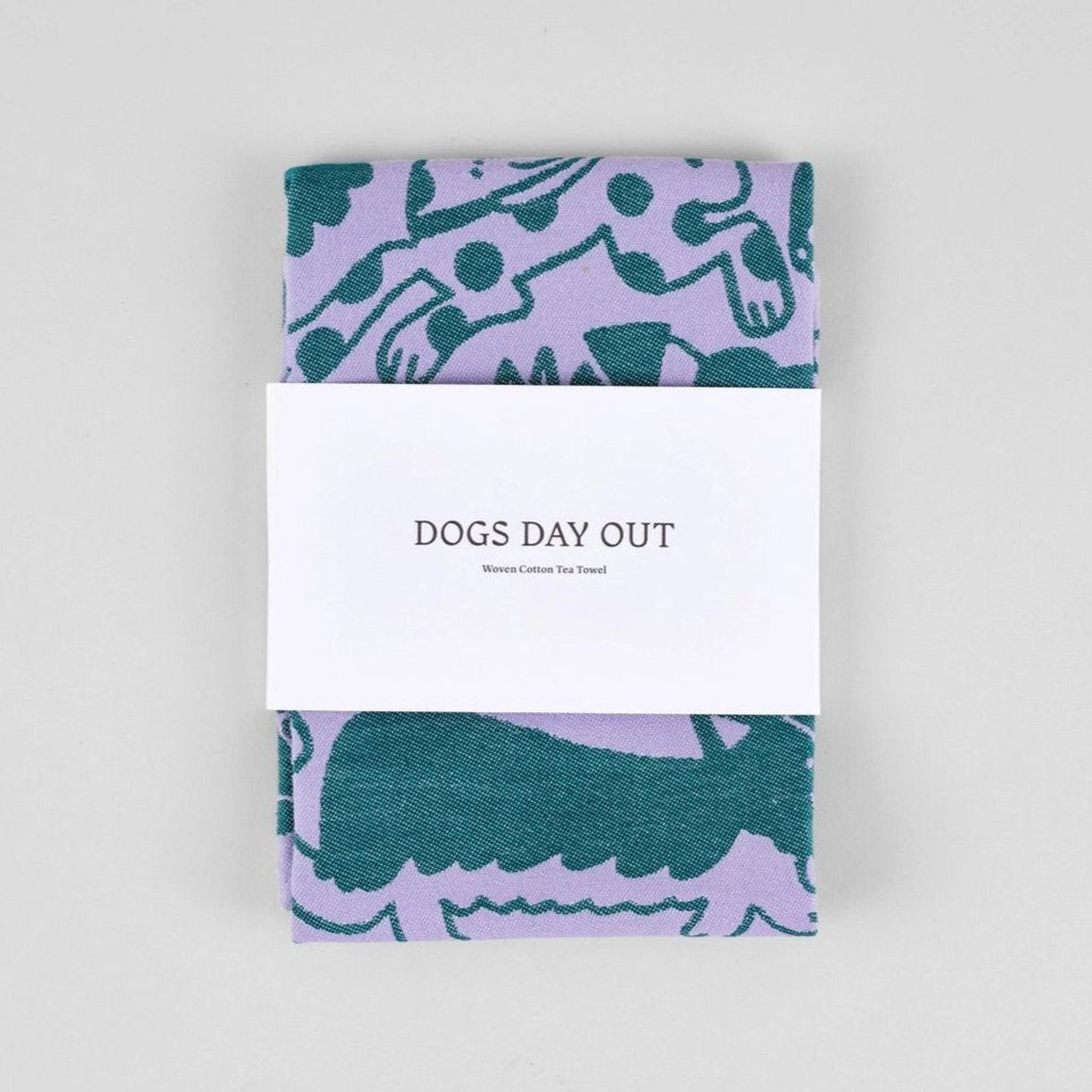 Fun and humorous, this design by Cari Vander Yacht comes in a colourful lilac and green colourway. Made with 100% woven cotton, the towels feature a posse of pooches who are just here to have fun.