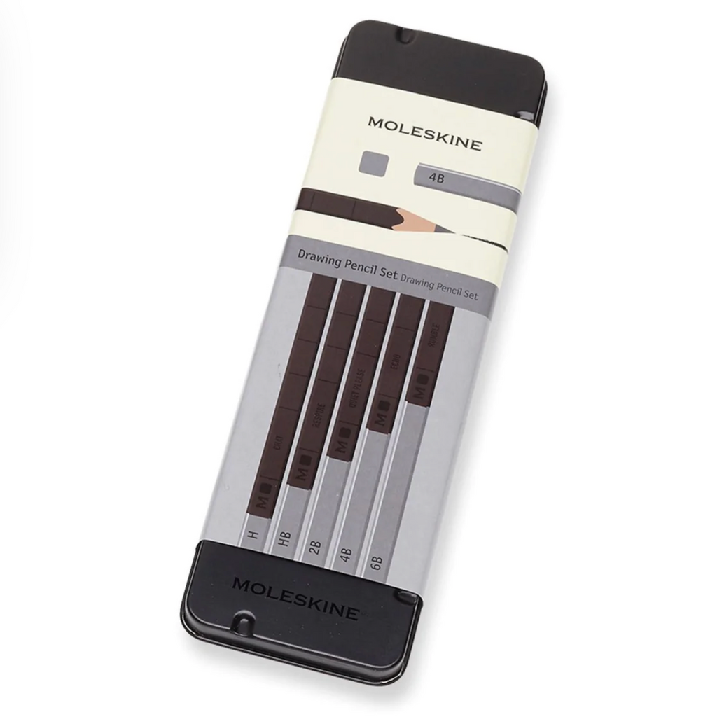- 6B Rumble Smooth and dark for thunderous shading and full lines - 4B Echo Softly smudged strokes that roll on and on and on and on - 2B Quiet please Discreet, hushed lines sketch out definite ideas - HB Respire As natural as breathing, for perfectly balanced impressions - H Chat Light and quick-fire marks for sketches drawn on the go - five graphite drawing pencils with essential Moleskine design - surprisingly square cross-section - FSC®-certified natural cedar wood - 3mm core