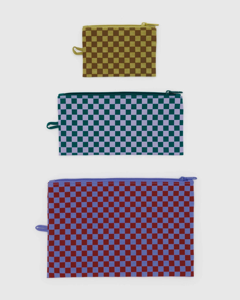 — Set of three pouches — Large Pouch Dimensions: 7 in. H x 10.5 in. W — Medium Pouch Dimensions: 4.25 in. H x 9 in. W — Small Pouch Dimensions: 3.5 in. H x 5 in. W — Recycled Heavyweight Nylon — Machine Washable