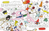 Ce livre tête-bêche offre deux versions d’une même histoire dans lesquelles les protagonistes et le vocabulaire changent de place pour donner lieu à une aventure absurde et tordue d’un côté et à une course rocambolesque de l’autre.