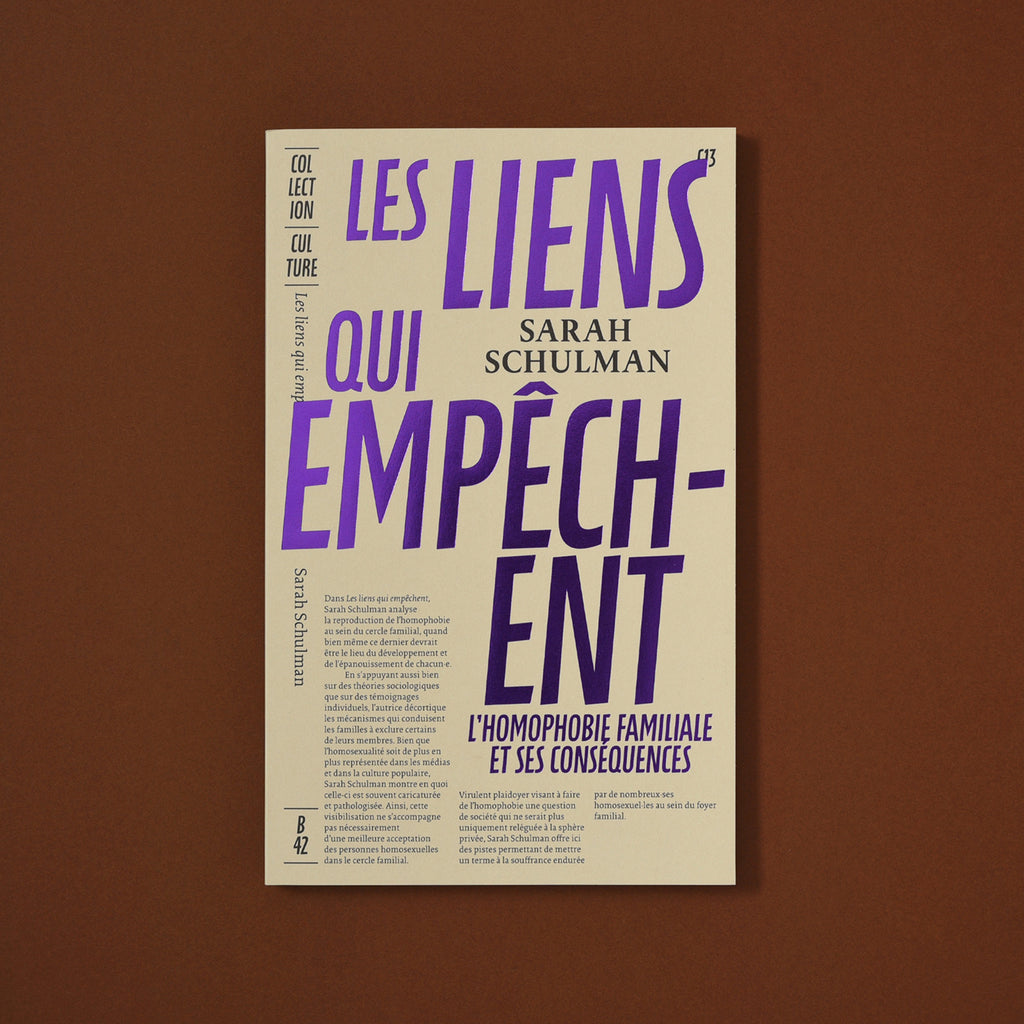 "DansLes liens qui empêchent, Sarah Schulman analyse la reproduction de l’homophobie au sein du cercle familial, quand bien même ce dernier devrait être le lieu du développement et de l’épanouissement de chacun·e.