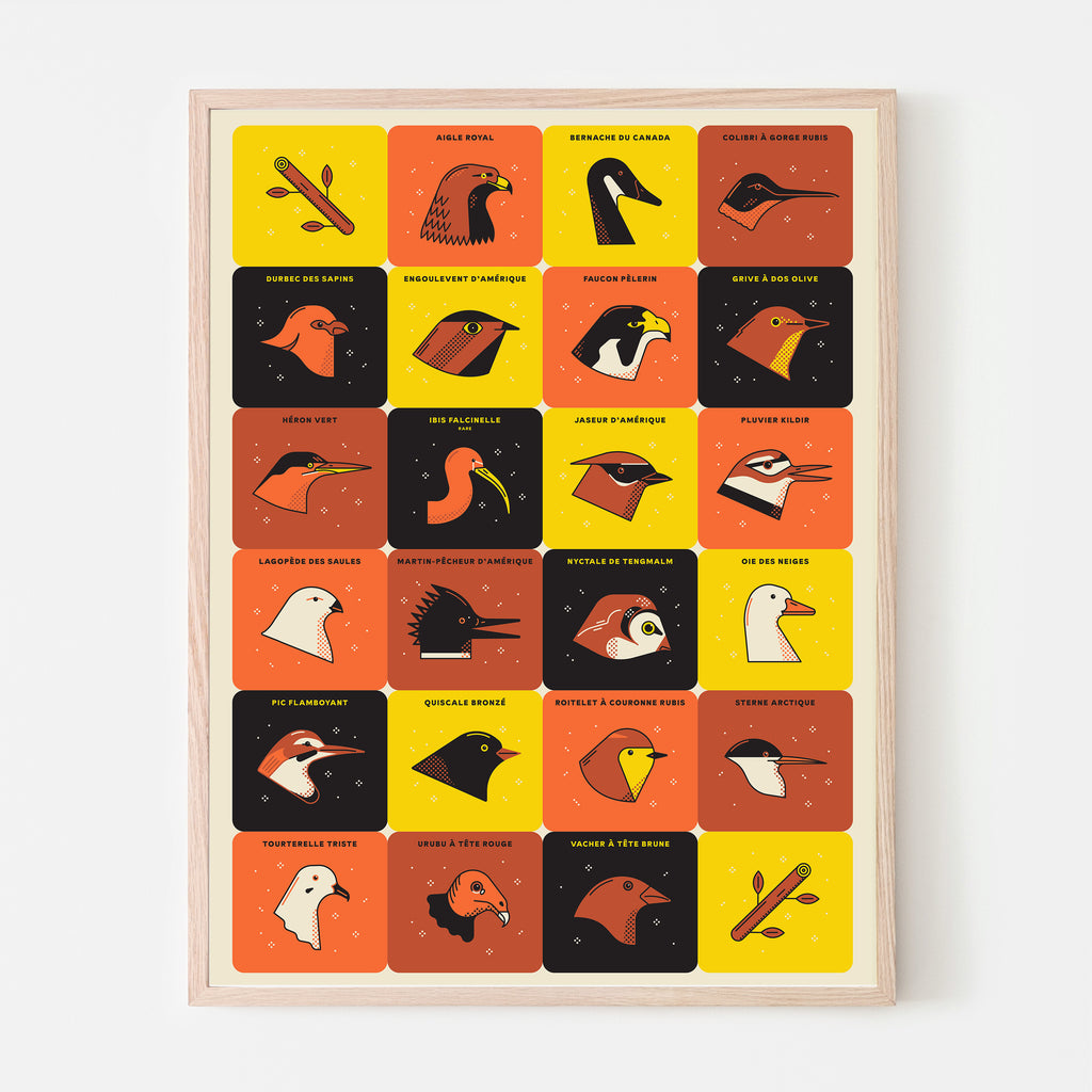 Birds of Québec Artist: Simon L’Archevêque Format: 18 x 24 inches Hand-screenprinted on Matte finish on Cougar Smooth Cover 100lbs paper Limited series of 50 prints Signed and numbered by the artist